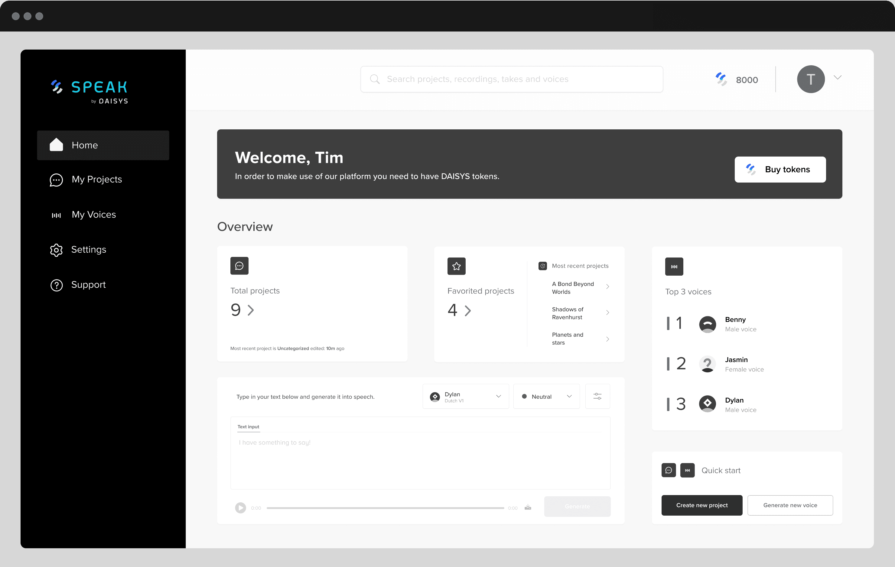 Generate voices that sound remarkably real, bringing a touch of authenticity to text-to-speech. SPEAK by DAISYS combines AI voice innovation with powerful tools to help you build and grow your brand or product.